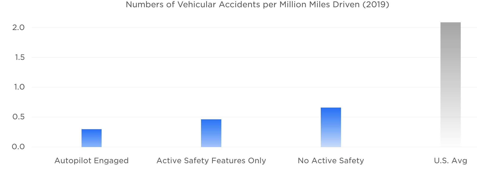 Tesla already claims that it is much safer to drive with Autopilot than without: